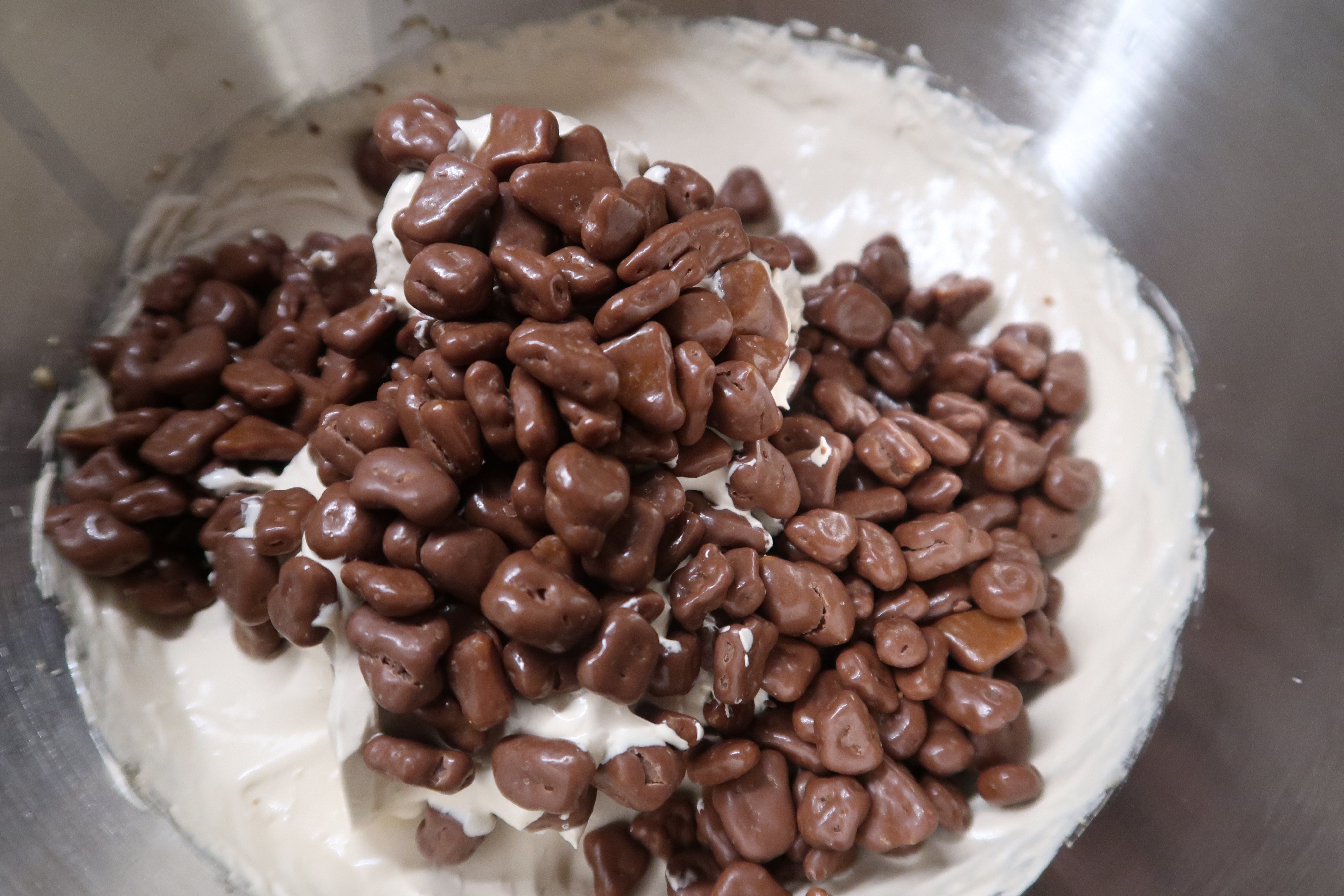 Byrjað er á því að þeyta saman eggjahvítur og púðursykri, í 20 mínutur eða þar til stífþeytt. Síðan er varlega blandað daimkurli útí með sleif. Topparnir eru settir á bökunarplötu með teskeiðum og bakaðir á 150° í 20 mínútur. Toppunum er leyft að kólna alveg. Rjóminn er léttþeyttur og þá er niðursoðnu mjólkinni hellt útí á meðan hrærivélin er enn í gangi í mjórri bunu. Þegar öll mjólkin er komin saman við þá er slökkt á hrærivélinni og súkkulaðinu er hrært varlega saman við með sleif. Toppunum er svo raðað í bökunarform sem er klætt bökunarpappír og svo er rjómablöndunni hellt yfir og slétt úr. Síðan er ísinn settur í frysti í amk 6 klst. Þá er hægt að bera ísinn fram.