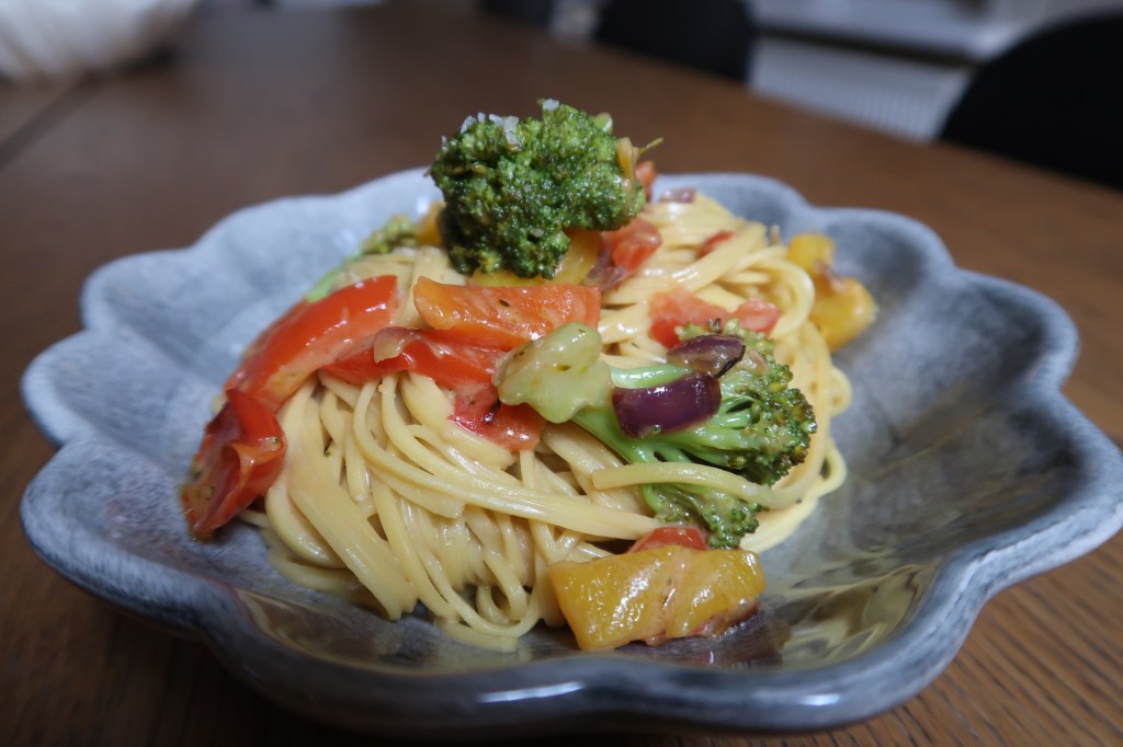 Oliver eldaði fyrir okkur í kvöld, ég er búin að suða í honum að elda þennan rétt í smá tíma. Hann hefur gert hann nokkrum sinnum áður og hann er svo góður að ég get ekki hætt þegar ég byrja. Þessi réttur er mjög fljótlegur en hann tekur um 20 mínútur að útbúa. Einnig skemmir ekki fyrir að rétturinn er grænmetis, gott fyrir mikið kjötát seinna í mánuðinum.
