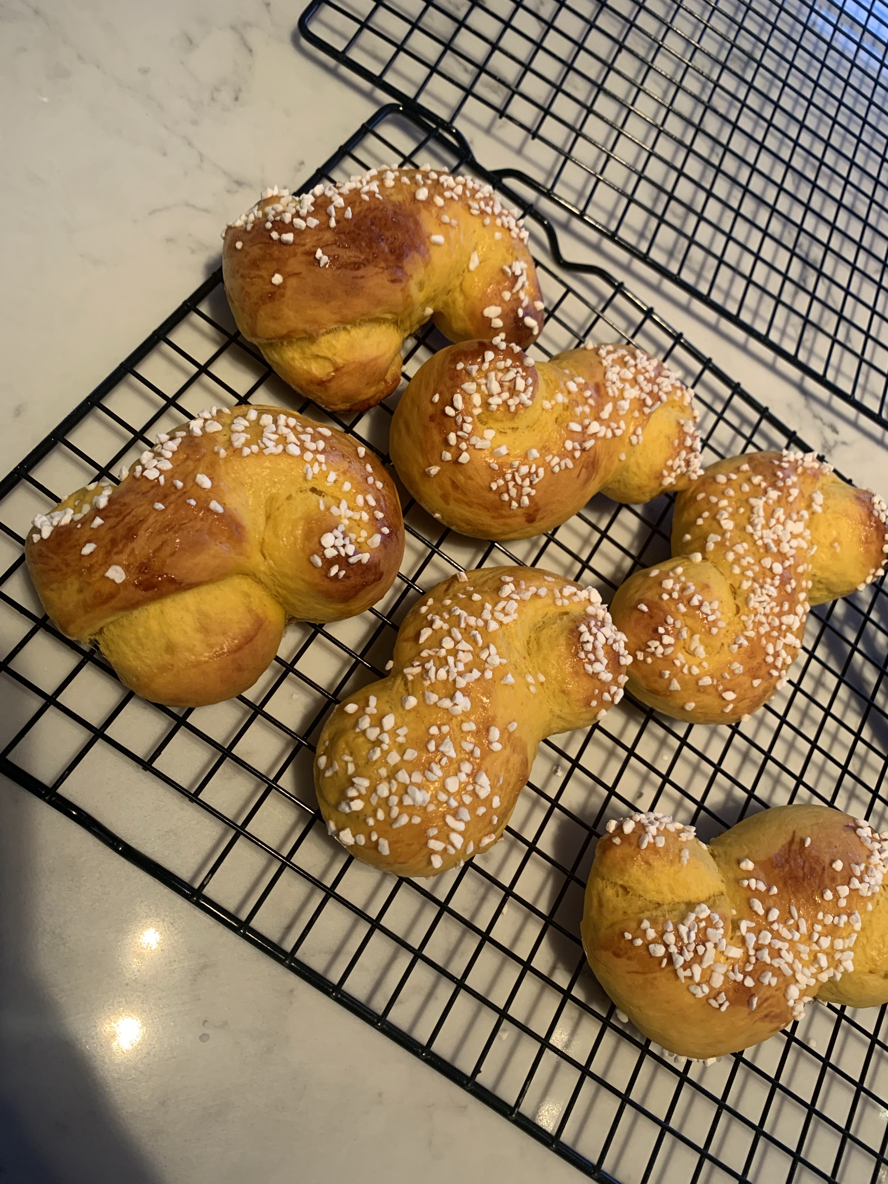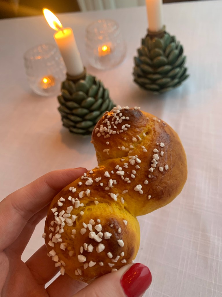 Mér finnst jólin ekki koma nema ég fái saffran bakkelsi, saffransnúða eða lussekatter, helst bæði. Mamma gerði lussekatter í dag fyrir aðventukaffið og ég held ég hafi borðað yfir mig af þeim. Þeir eru svo ótrúlega góðir. Ég borðaði þá eina og sér, mamma borðaði þá með þeyttu smjöri og salti og Hemmi tók þetta skrefinu lengra og skellti mysing á. Ég mæli með að prufa!
