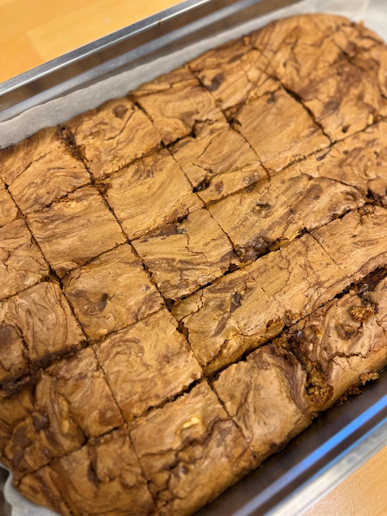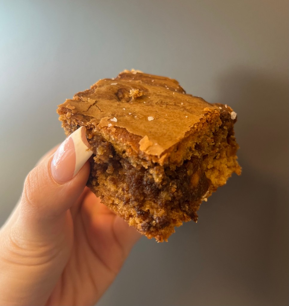Byrjað er á að brúna smjörið í potti eða pönnu. Þegar smjörið er bráðnað og hefur fengið smá lit er púðursykrinum hrært saman við. Bætið svo saltinu og vanilludropunum út í og hrærið vel, leyfið blöndunni að kólna áður en eggjunum er bætt við. Hrærið eggjunum saman við og svo lyftiduftinu og hveitinu. Að lokum er súkkulaðinu hrært í deigið og deiginu skellt í skúffuform klæddu bökunarpappír. Bakið við 175° í 25-30 mínútur, þegar kakan hefur fengið góðan lit. Stráið grófu salti yfir og berið fram. Gott væri að bera fram með ís.
