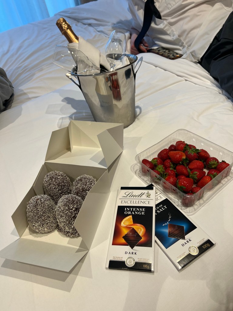 Á laugardeginum, síðasta deginum okkar mömmu í Köben, þá byrjuðum við á að fara í þinghúsið, svo fórum við mamma aðeins að versla. Á meðan fóru bræður mínir á hótelið okkar, ég hafði laumað þeim kortinu okkar á hótelið, og biðu þar með freyðivín, jarðaber, kókosbollur og súkkulaði sem við höfðum keypt og komum mömmu svo á óvart í tilefni af mæðradeginum sem var síðan á sunnudeginum. Þetta heppnaðist svo vel og var svo gaman.