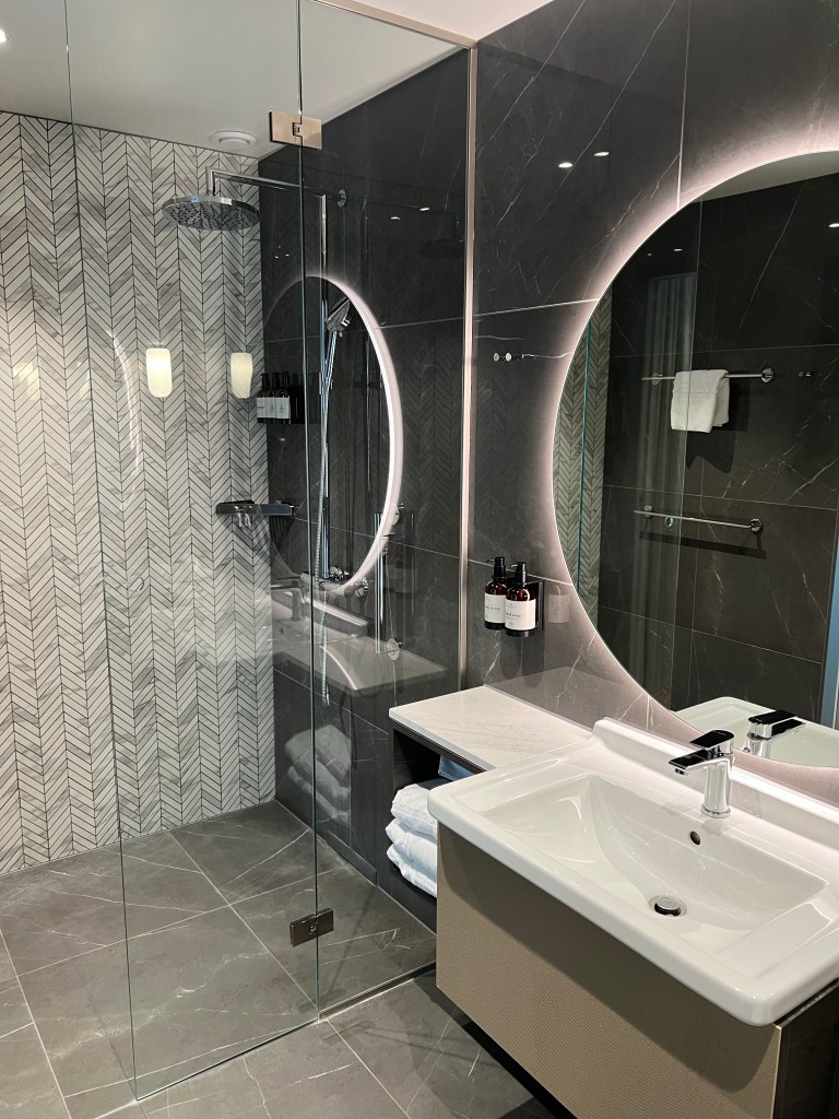 Við vorum á alveg trylltu hóteli sem heitir NH Collection sem var frábærlega staðsett. Við vorum tæpar 10 mínútur að rölta á Strikið til dæmis. Það var mjög rúmgott herbergið okkar og snyrtilegt, allt nýtt og flott. Það var svo alveg ótrúlega flott rækt niðri í kjallara og svo bar í lobbyinu.