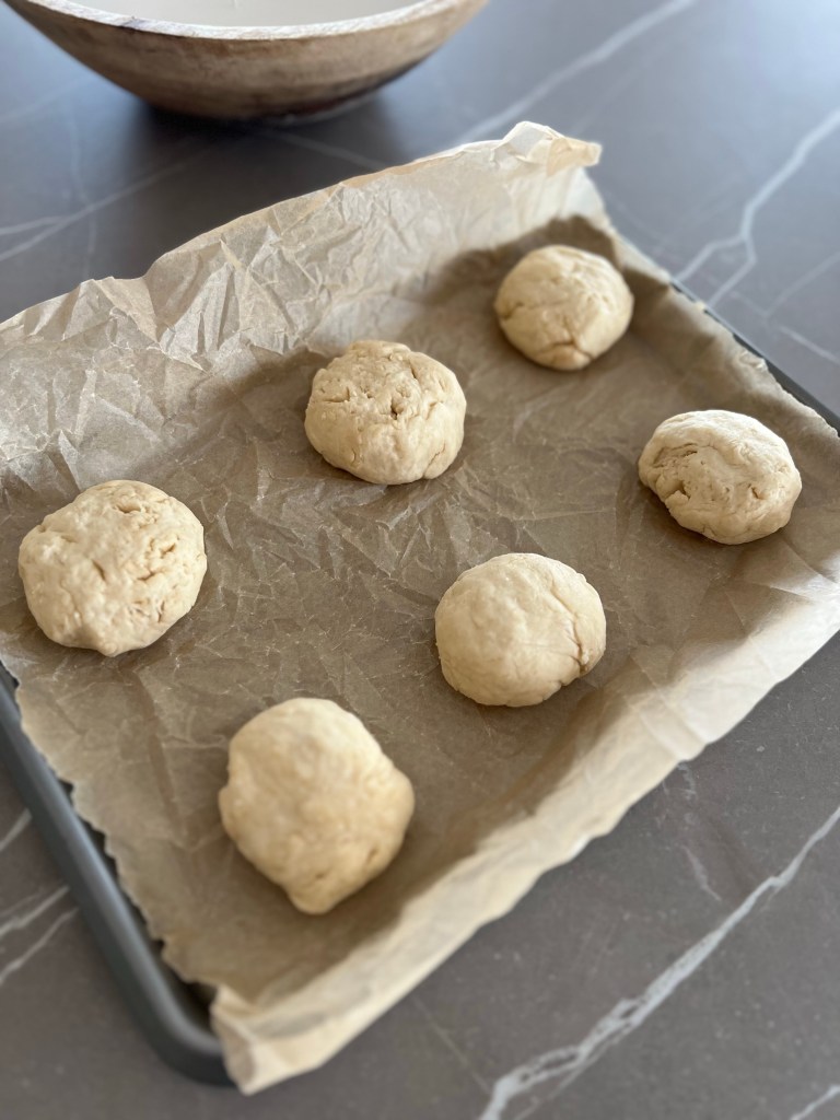 Á sunnudaginn fyrir viku þegar ég var ein heima með Emmu vaknaði ég og var í miklu bakstursstuði. Mig langaði svo að eiga eitthvað nýbakað í morgunmat en nennti ekki að fara að láta eitthvað hefast og bíða. Ég fann uppskrift af þessum ofureinföldu brauðbollum sem innihalda ekki ger og taka í alvöru undir 10 mínútur að útbúa og einungis 10-13 mínútur í ofninum. Þessar bollur eru eins basic og þær verða, auðvitað finnur maður muninn á að hafa ger en þessar eru samt mjög góðar og alveg þess virði að eyða þessum litla tíma í þær. Það er svo auðveldlega hægt að pimpa bollurnar upp með til dæmis sólkjarnafræjum, beyglukryddi, birkifræjum eða osti.