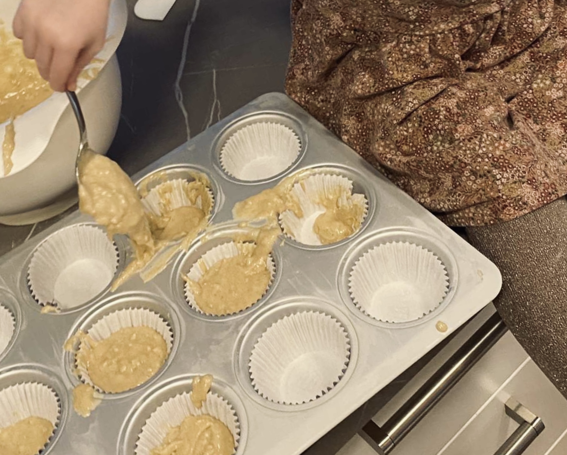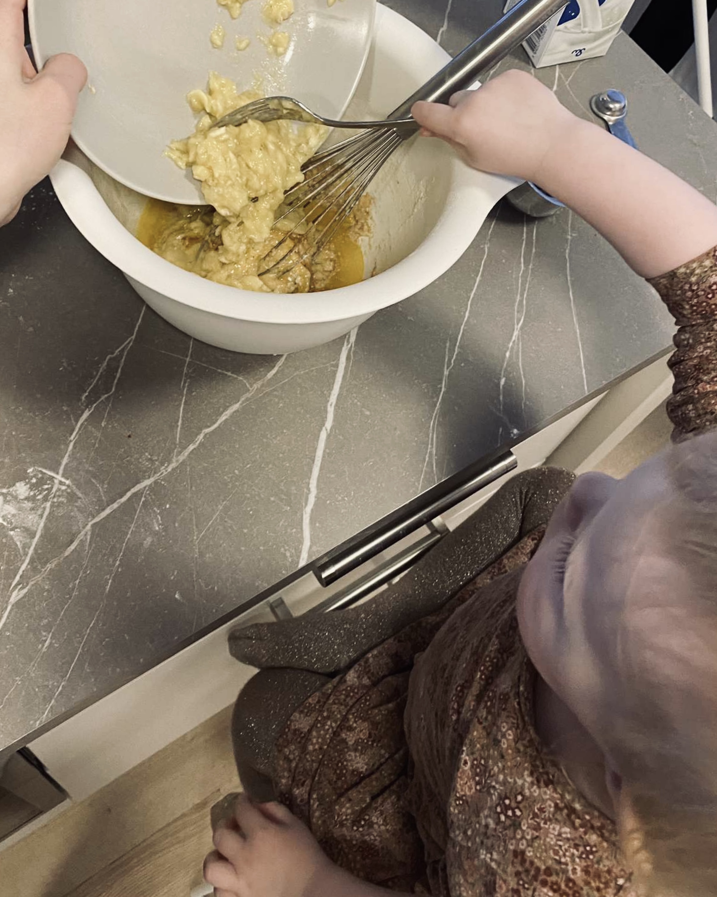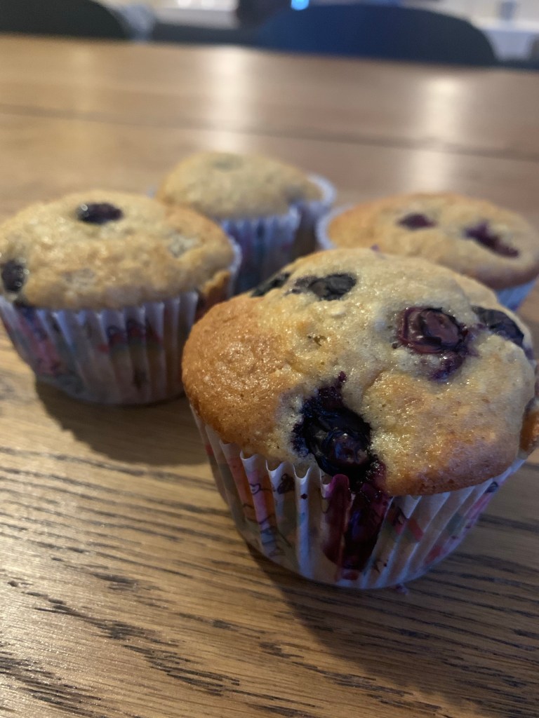 Í gærkvöldi fengum við skilaboð frá leikskólanum hennar Emmu að deildinni hennar yrði lokað daginn eftir, með rosalega litlum fyrirvara. Heba frænka mín sem býr í Danmörku er á landinu og gat bjargað okkur með að passa Emmu. Það var ótrúlega leiðinlegt veður eins og ég held að flestir hafi tekið eftir sem eru staddir á Íslandi. Heba ákvað að leyfa Emmu að baka með sér og hún var svo ánægð og montin með afraksturinn. Hún hámaði í sig fjórar möffins og gaf þeim háa einkunn. Ég spurði Hebu hvaða uppskrift hún hefði notað og hún notaði bananabrauðs uppskrift frá mömmu sem ég hef aldrei áður deilt hér nema hún setti bláber líka með, sem kom ótrúlega vel út. Síðan bakaði hún þær styttra en brauðið. En ef þið sleppið bláberjunum og bakið í 45 mínútur þá er þetta venjulegt, en mjög gott bananabrauð.