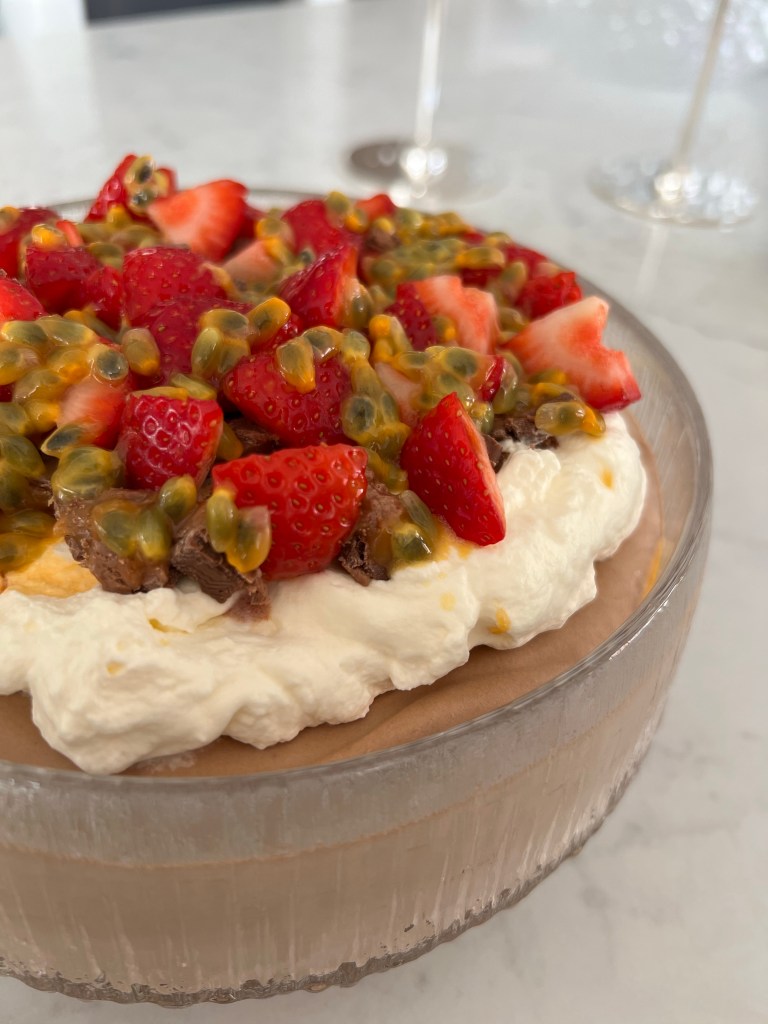 Setjið súkkulaðimúsina í skál eða falleg glös og látið standa í ísskáp þar til hún hefur stífnað. Berið fram með berjum og jafnvel þeyttum rjóma. Fyrir sumarlega útgáfu prófið að setja rjóma, hakkað Mars eða Snickers, jarðaber og passionfruit yfir, það klikkar ekki!