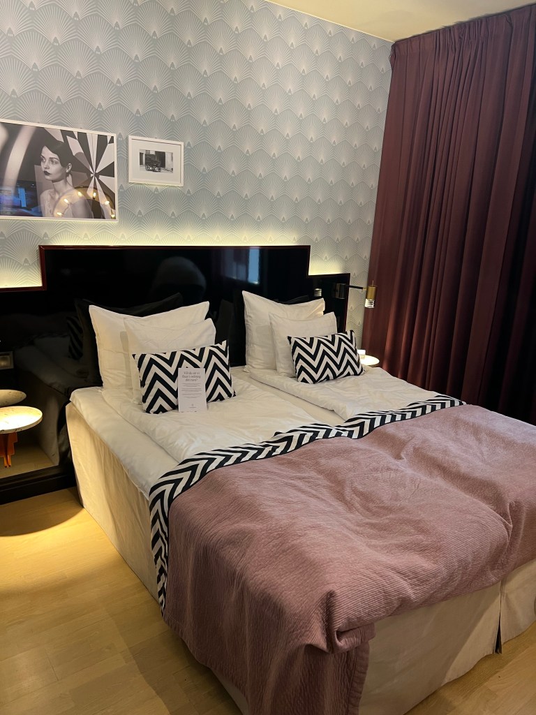 Við vorum á alveg trylltu hóteli sem heitir NH Collection sem var frábærlega staðsett. Við vorum tæpar 10 mínútur að rölta á Strikið til dæmis. Það var mjög rúmgott herbergið okkar og snyrtilegt, allt nýtt og flott. Það var svo alveg ótrúlega flott rækt niðri í kjallara og svo bar í lobbyinu.